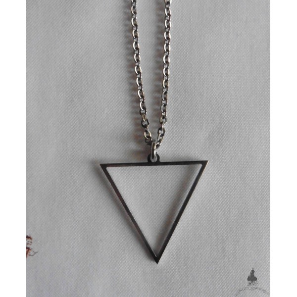 Collier court avec chaine et symbole triangle inversé en acier inoxydable.