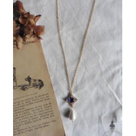 Ravissant et délicat collier de Reine avec pendentif Renaissance en verre bleu.