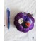 Petite Citrouille en velours violet embellie de rubans de dentelle mauve et marron et de fleurs en feutrine, perles, velours, coton et soie (blanc, noir, violet et orange).