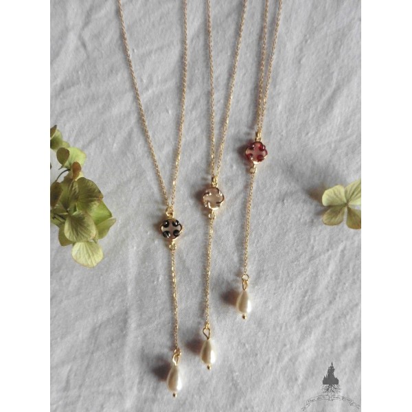 Chaîne pendante en acier inoxydable doré avec petite perle-goutte en coquille nacrée synthétiquement.