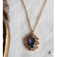 Ravissant et délicat collier de Reine avec pendentif violet, en hommage à la reine Marguerite de France, épouse de Henri IV et grande amatrice d'améthystes (ici, il s'agit de verre).