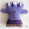 Réalisée en feutrine violet clair (mauve), dentelle violet, et ruban métallisé violet.