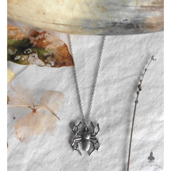 Collier Araignée acier argent, Sorcière, Gothique, Veuve noire, Dark Academia